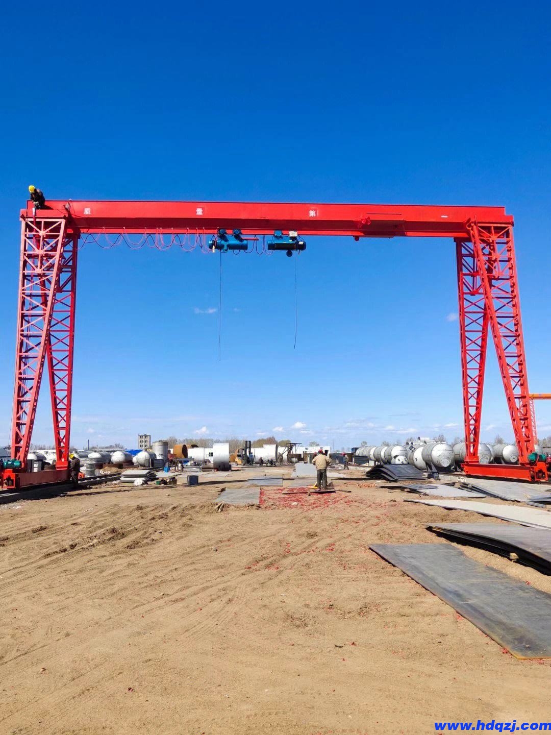一般情況下,起重量在50t以下,跨度在35m以內(nèi),無(wú)特殊使用要求,宜選用單主梁式。如果要求門腿寬度大,工作速度較高,或經(jīng)常吊運(yùn)重件、長(zhǎng)大件,則宜選雙梁門式起重機(jī)。